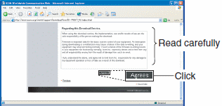 5. Zapoznaj się dokładnie z Regarding this Download Service; (Uwagi dotyczące usługi ściągania plików) i wówczas kliknij na przycisk wyrażenia zgody [AGREE].