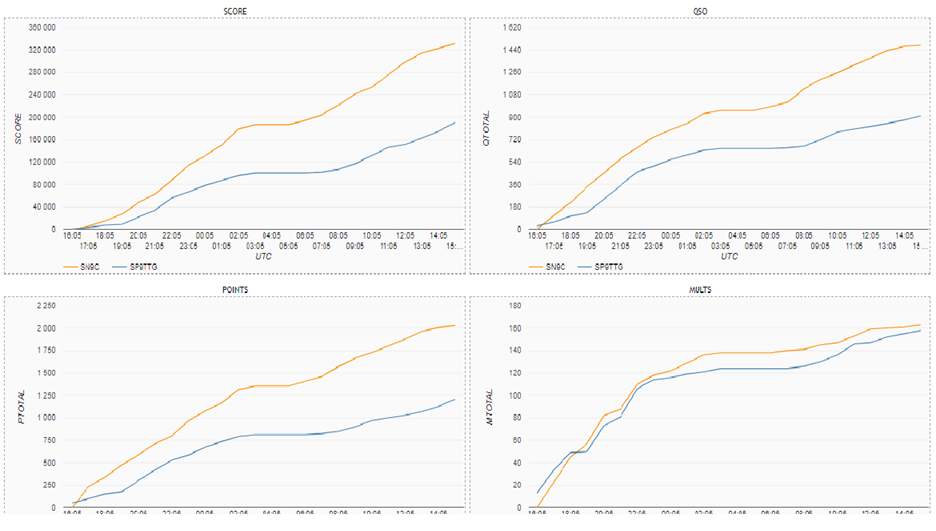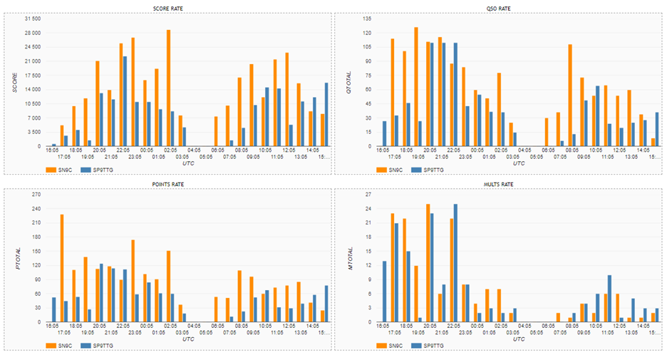 Wykresy narastająco oraz godzinowe rate dla stacji SN9C(op.SP9GR) i SP9TTG